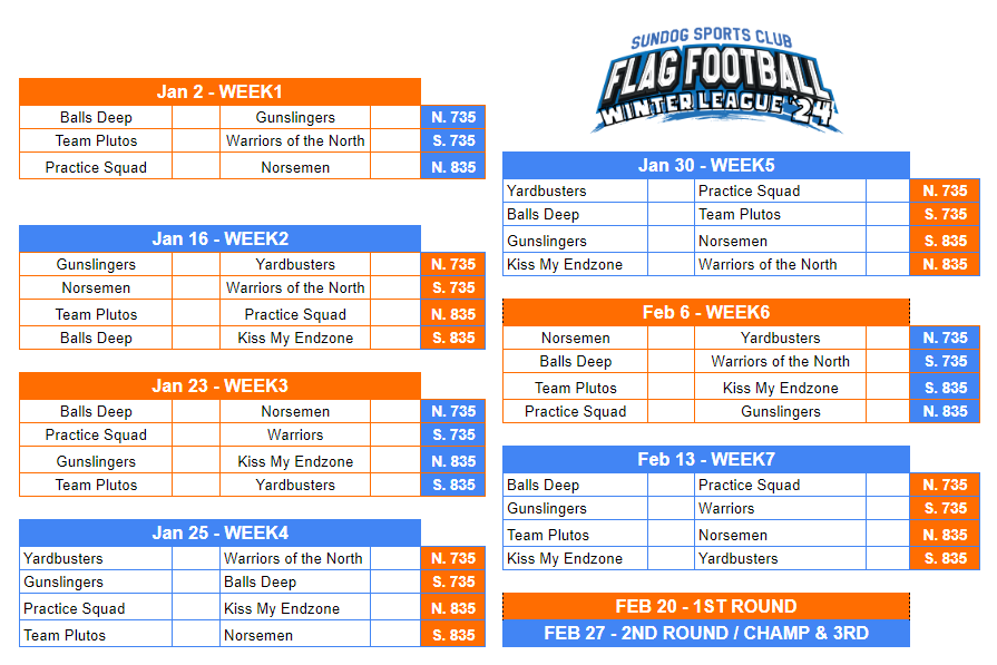 2024 ADULT WINTER FLAG FOOTBALL LEAGUE